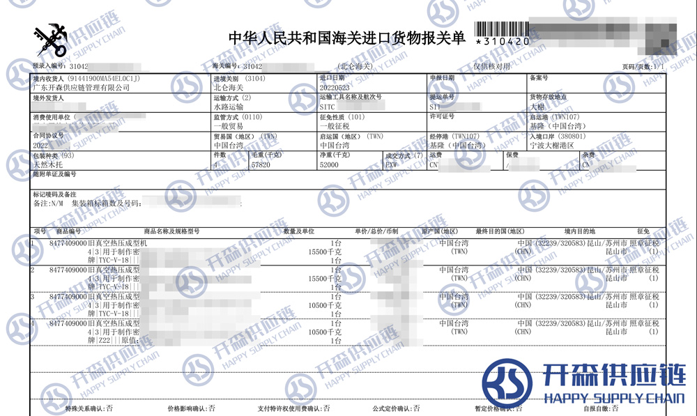 一、舊真空熱壓成型機(jī)進(jìn)口報(bào)關(guān)代理案例詳情