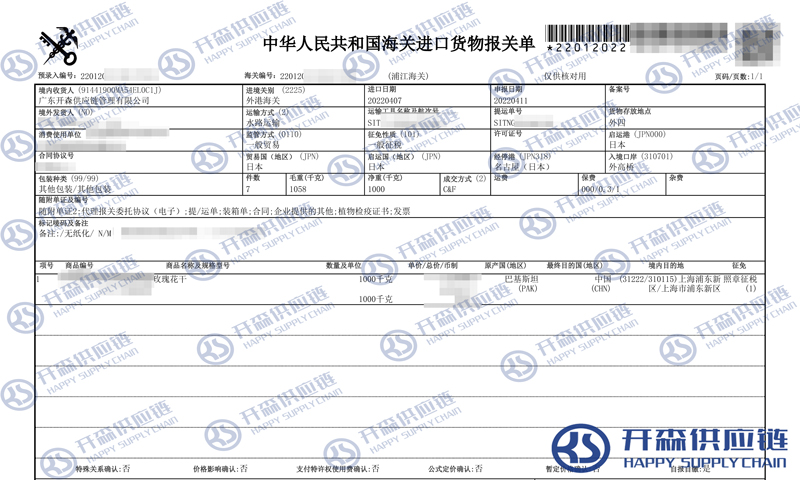 【本文結(jié)語】 上述就是日本玫瑰花干進(jìn)口報關(guān)清關(guān)代理服務(wù)【經(jīng)典案例】的全部內(nèi)容,希望能對您有所幫助,如有普貨進(jìn)口報關(guān)案例上任何疑問及問題可隨時在線聯(lián)系我們或撥打 18002611553,開森供應(yīng)鏈擁有豐富的普貨進(jìn)口報關(guān)案例操作經(jīng)驗及案例,10余年進(jìn)口經(jīng)驗為您所用,各類進(jìn)口疑難都能為您一一解答及協(xié)助快速處理解決!