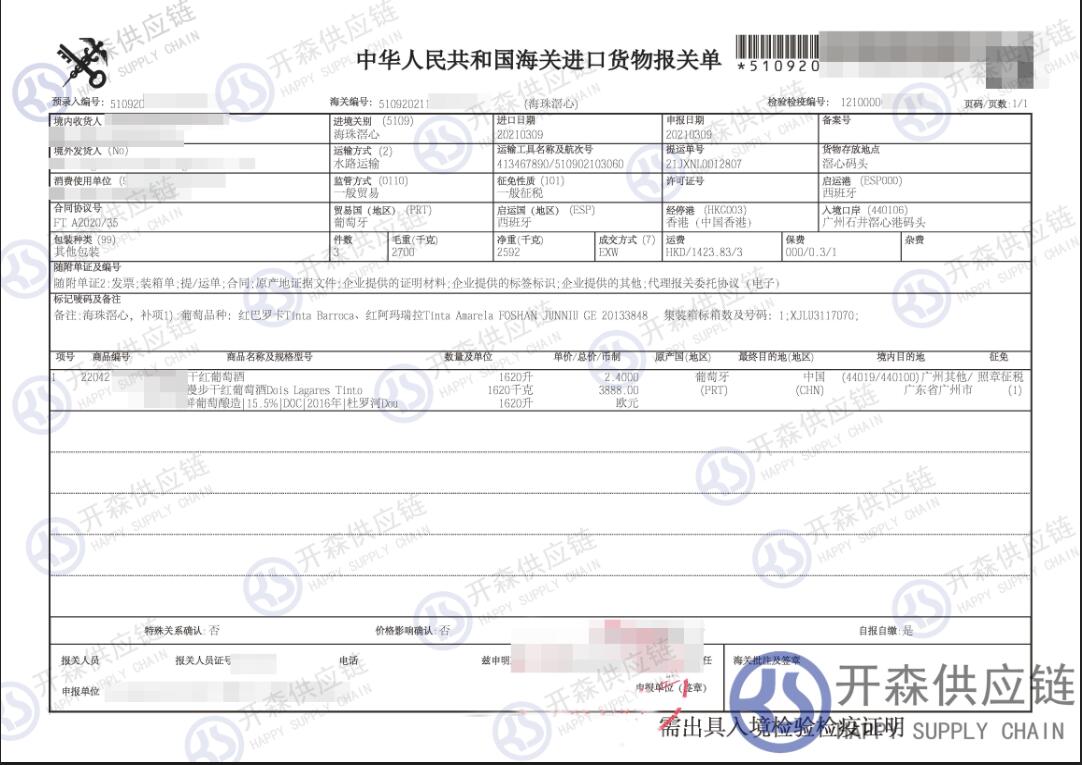 開森進口供應(yīng)鏈擁有豐富的紅酒/葡萄酒進口清關(guān)操作經(jīng)驗及案例,憑借著團隊多年來的進口報關(guān)經(jīng)驗,制定了豐富的食品進口報關(guān)案例,使得公司在食品類進口報關(guān)取得優(yōu)異的成績,在食品進口行業(yè)建立了良好的口碑與優(yōu)勢。