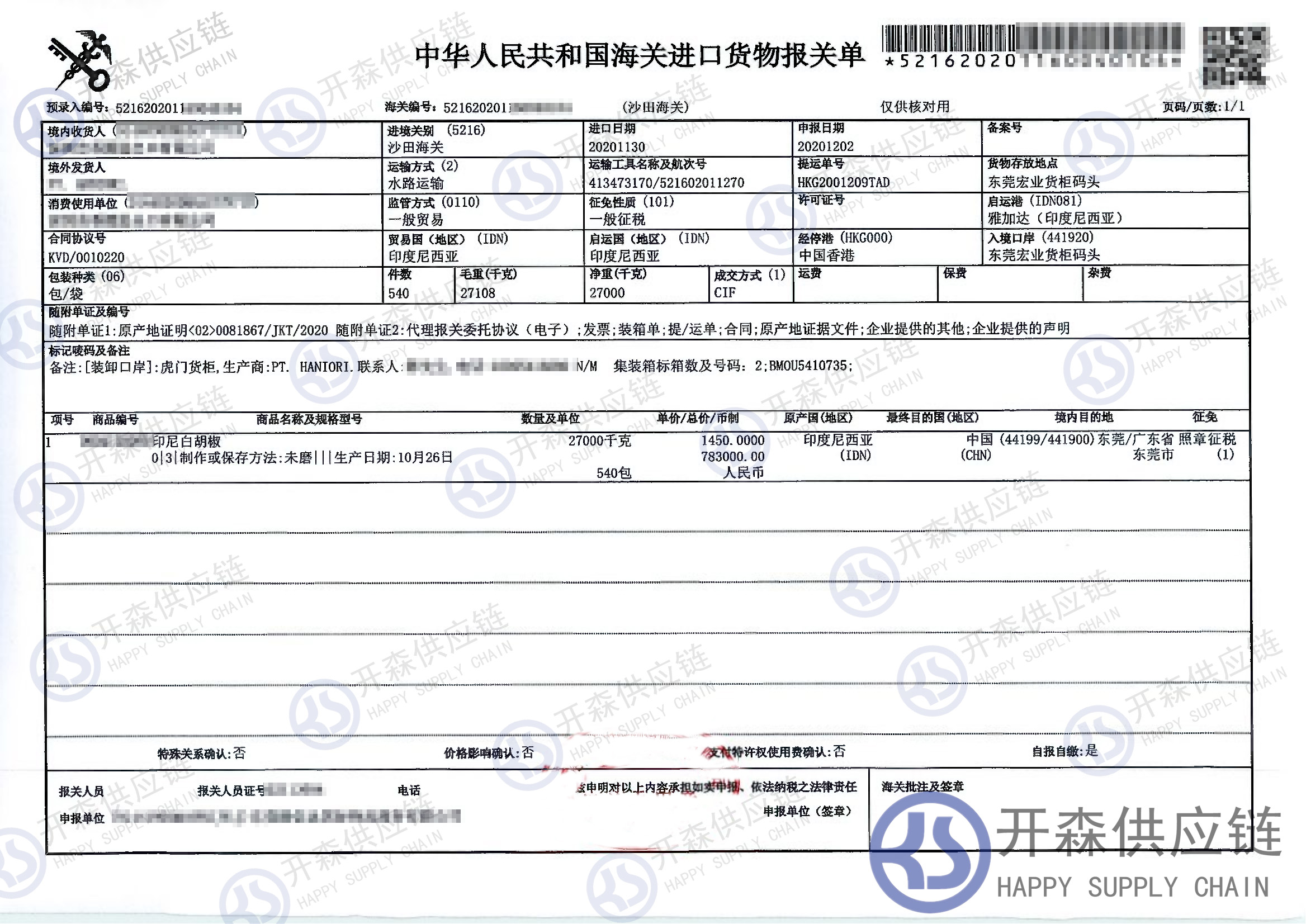 從印度尼西亞進口一批胡椒到東莞碼頭,我司提供門到門進口一站式清關服務,開森擁有十余年農(nóng)副產(chǎn)品進口清關經(jīng)驗及案例,為客戶提供量身制作的進口方案,讓客戶進口省時省心省成本。